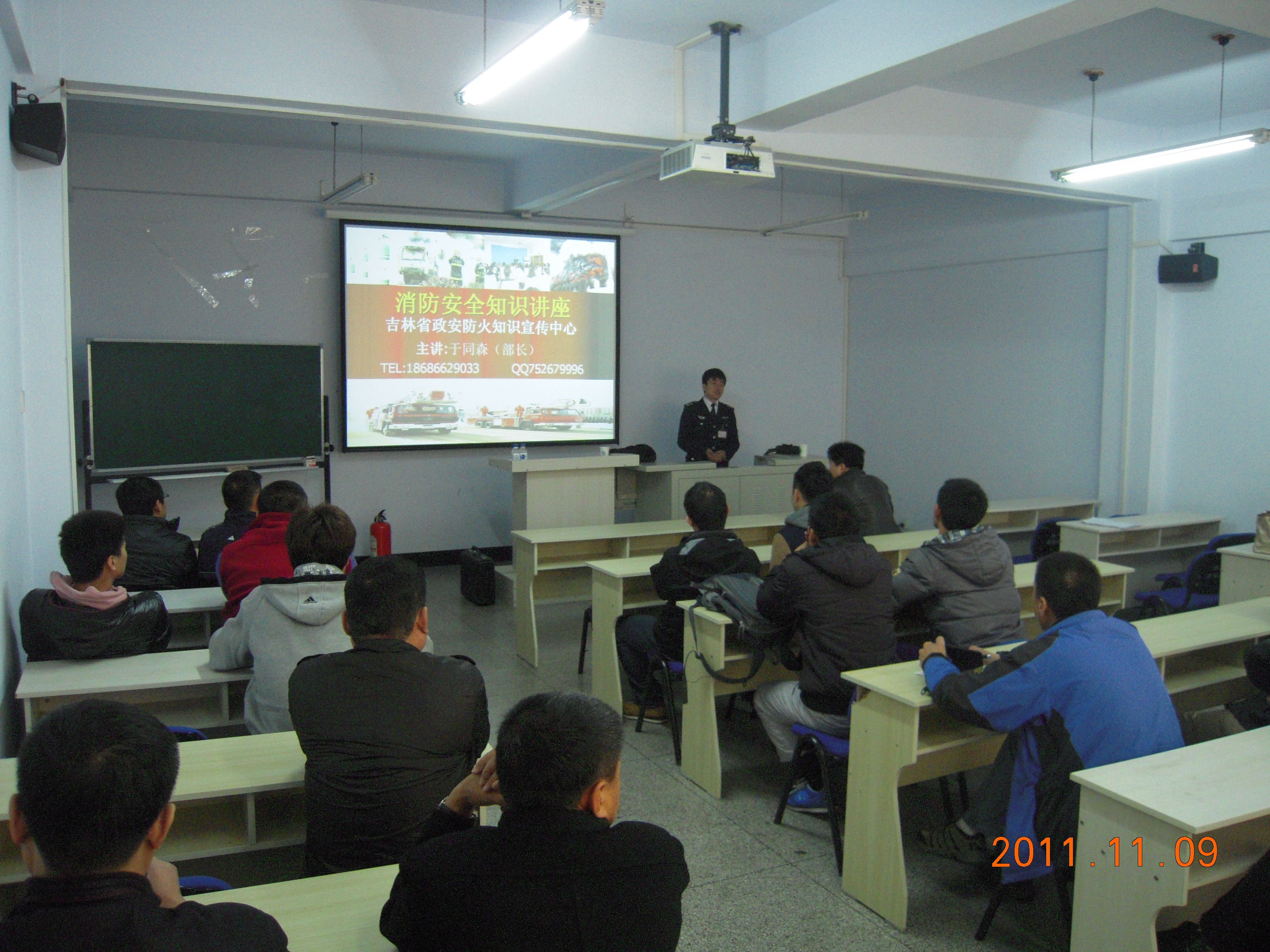 邀请长春市政安防火知识宣传中心教官于同森为师生进行的普及消防知识报告会,成人导航