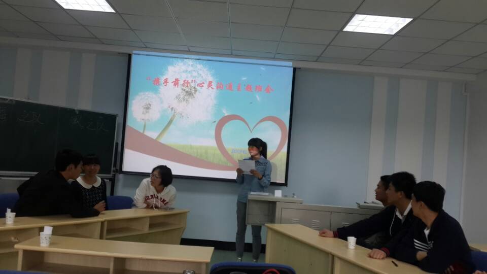 研究生学风建设,促进集体和谐发展,树立正确人生理想与远大目标的理念,在体育馆多媒体教室召开了以“携手前行”为主题的心灵沟通主题班会。