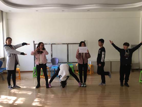 ,破冰活动让同学们迅速的彼此认识为整个活动营造好的氛围。团队建立阶段将同学们分成四组开展了“信任之旅”“人体字母”“抢滩登陆”“人椅破冰”“信心启迪”四个项目。人体字母展现了成人导航