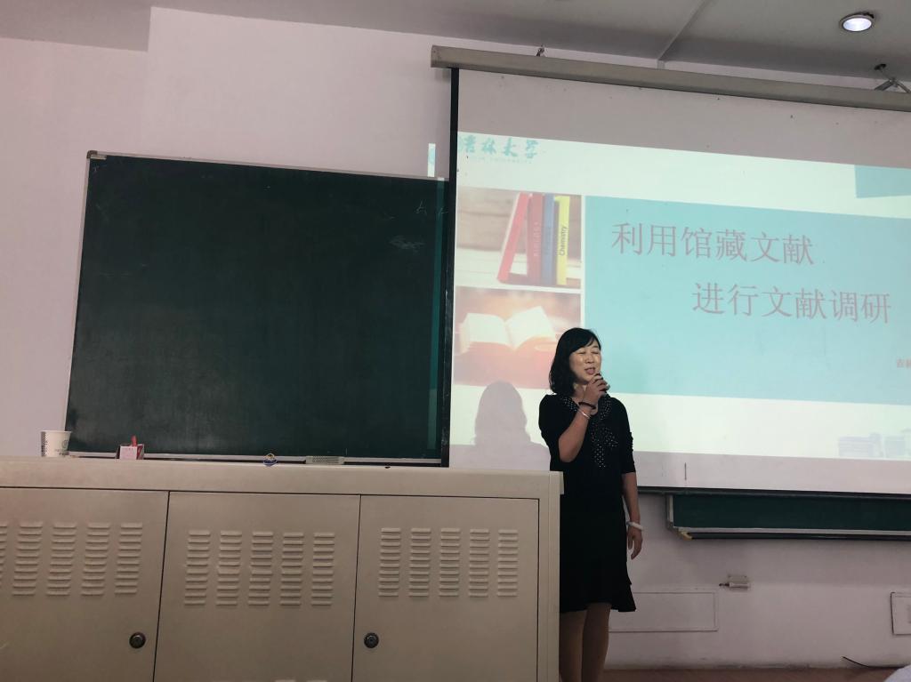 图书馆参考咨询部副研究馆员刘冲娇老师为同学们进行讲解。成人导航