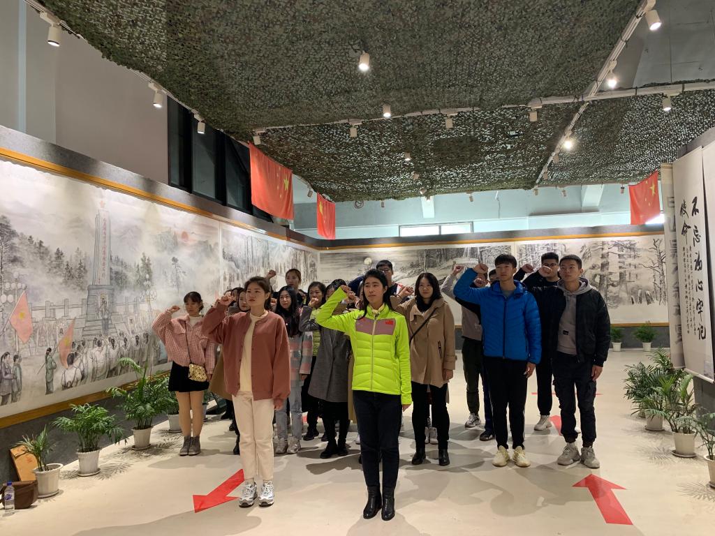 本次活动中我们有幸见到了赵明仁先生,赵明仁先生生动的为我们讲述了他创作时的心路历程,伴随着赵明仁先生的讲解,杨靖宇将军带领红军作战的一幕幕场景仿佛浮现在我们眼前。1940年2月23日,杨靖宇在独自一人与日伪军周旋5昼夜后,被敌人包围。16时30分,东北抗日联军第一路军总司令兼政委杨靖宇,为中华民族的独立、为中国人民的解放,壮烈牺牲。杨靖宇将军不怕牺牲,英勇战斗的精神让同学们肃然起敬。最后,大家在鲜红的党旗下重温了入党誓词,进行庄严肃穆的宣誓。
