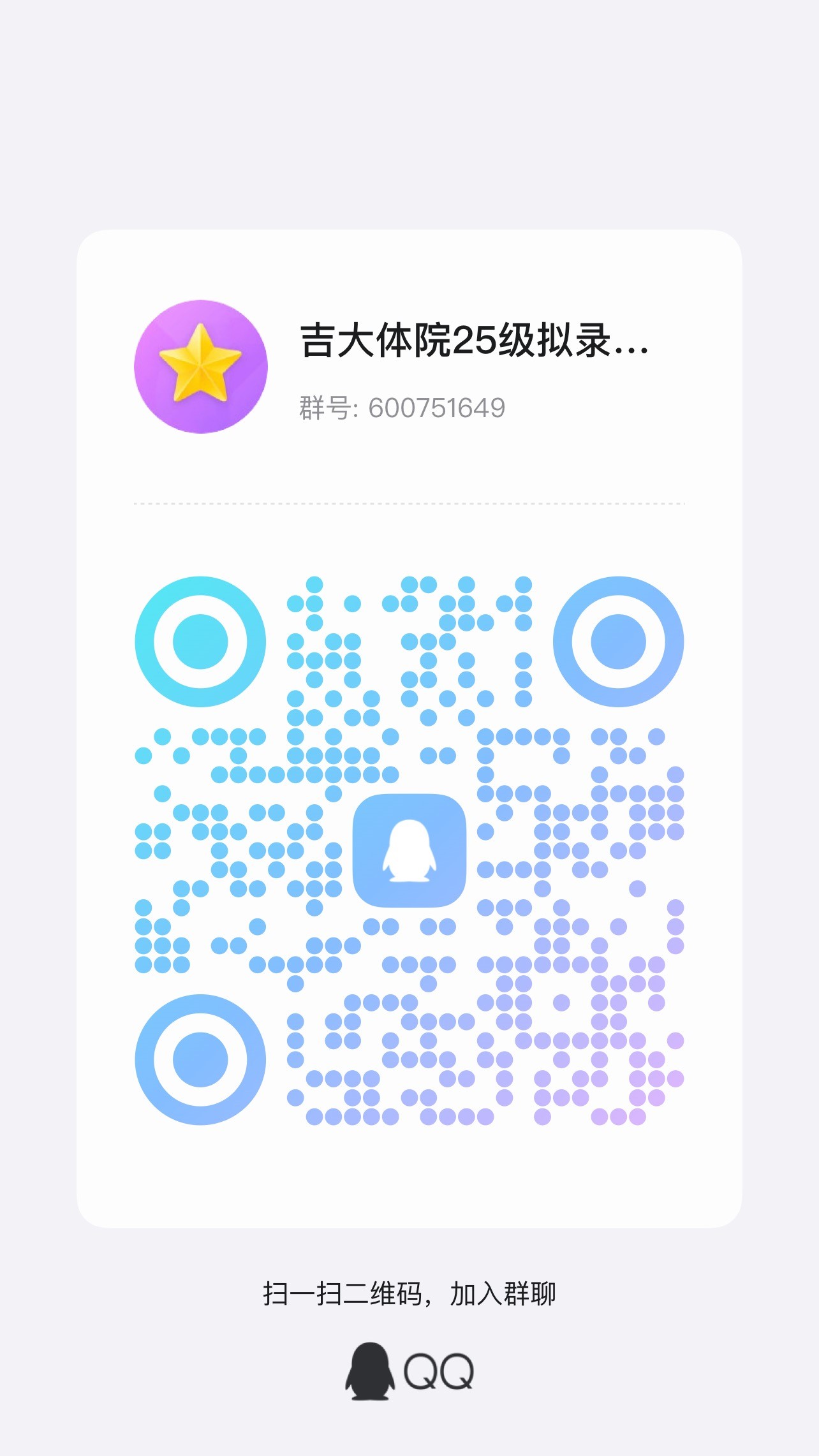 3.调档函及考生现实表现考察情况表将发送至QQ群,请拟录取考生及时扫描图片二维码加群。