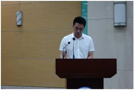 副院长李廷奎主持。中国大学生体育协会毽球分会秘书长郑志伟致辞