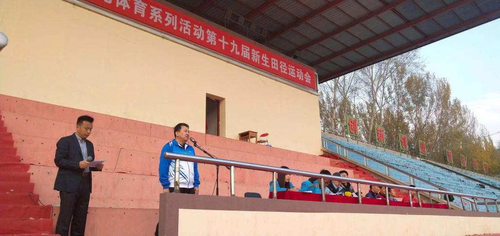 党委书记逄锦彩宣布运动会开幕。新生田径运动会共有828名新生运动员参加了18个项目的比赛。