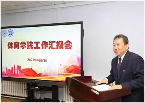 目前基本情况、未来发展方向、困难与诉求进行了汇报,强调了“教学为核心、群体是基础、竞技为亮点、科研作动力”的发展思路,力求以高质量的体育工作守护师生身心健康,助力成人导航