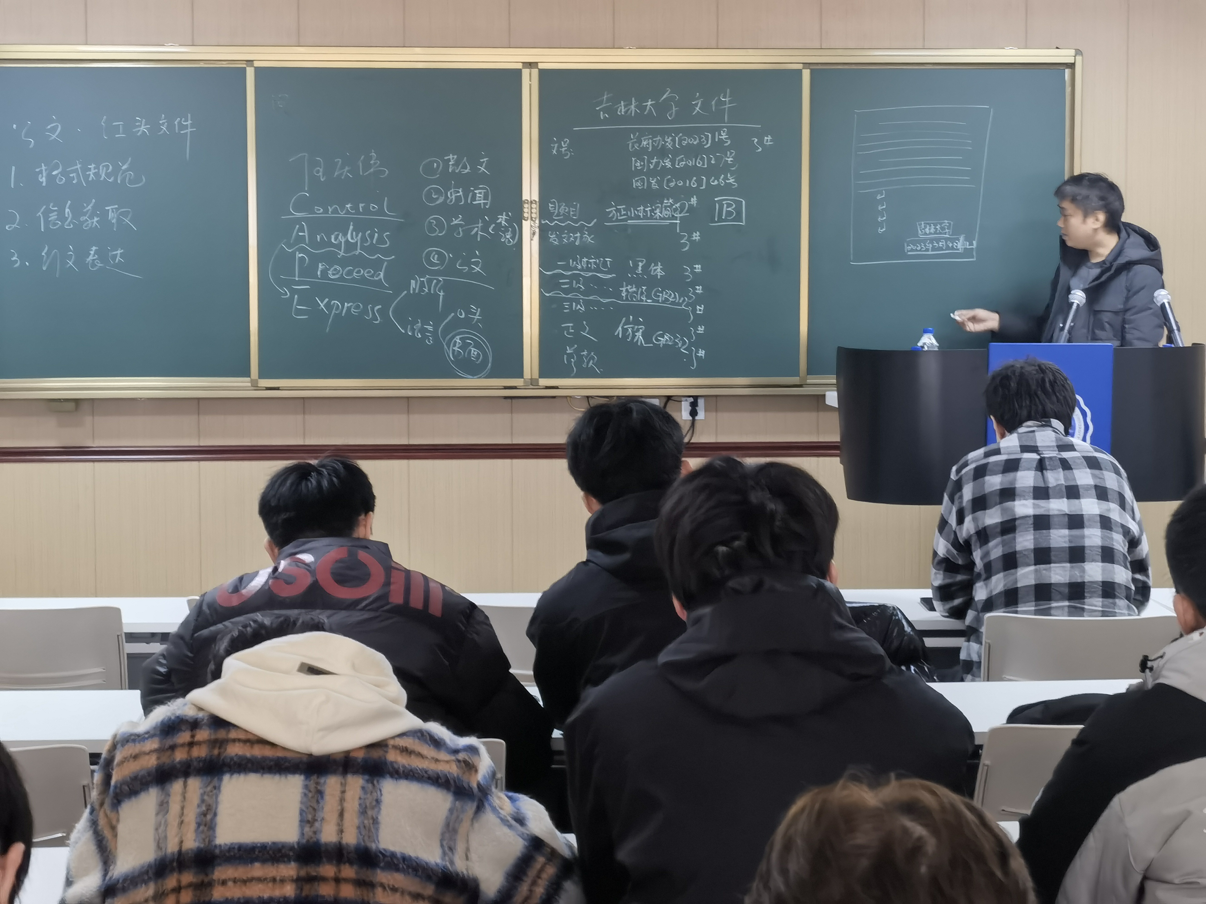 会上,任庆伟老师首先为学生骨干做公文写作方面的培训,任老师从格式规范、信息获取、行文表达的三个方面,由浅入深地、系统地将如何进行公文写作进行了详细地阐述,使学生骨干们进一步提升工作水平与能力。之后,宫勖能老师由衷地感谢任老师在百忙之中为学生骨干做本次培训,同时,也对团学骨干上学期的辛勤付出表示感谢,希望大家新学期再接再厉,今年是党的二十大开局之年,各组织、各部门要按照成人导航