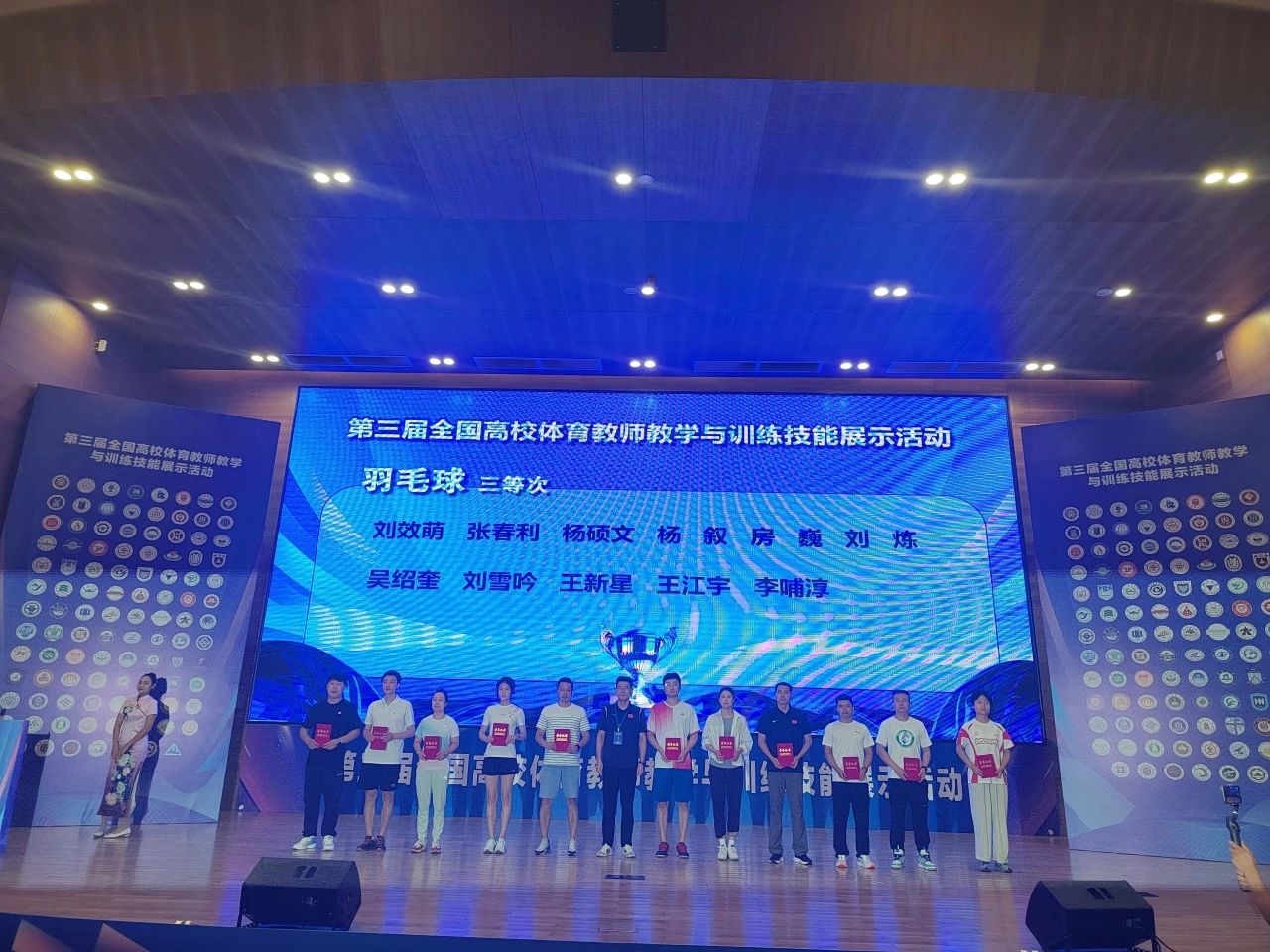 由王祥全副院长带队,委派邹然、张春利、汪新研三位教师参加此次大赛。教学实践环节,三位教师赛前对教学内容精心构思并不断优化完善,获评占优;专业技能测试环节,三位教师积极备战、表现完美。经过激烈比拼,最终喜获佳绩。汪新研老师获得排球项目一等奖,邹然老师获得操舞类项目三等奖,张春利老师获得羽毛球项目三等奖。三位教师在大赛中展现了卓越的教学能力和运动技能水平,体现出成人导航