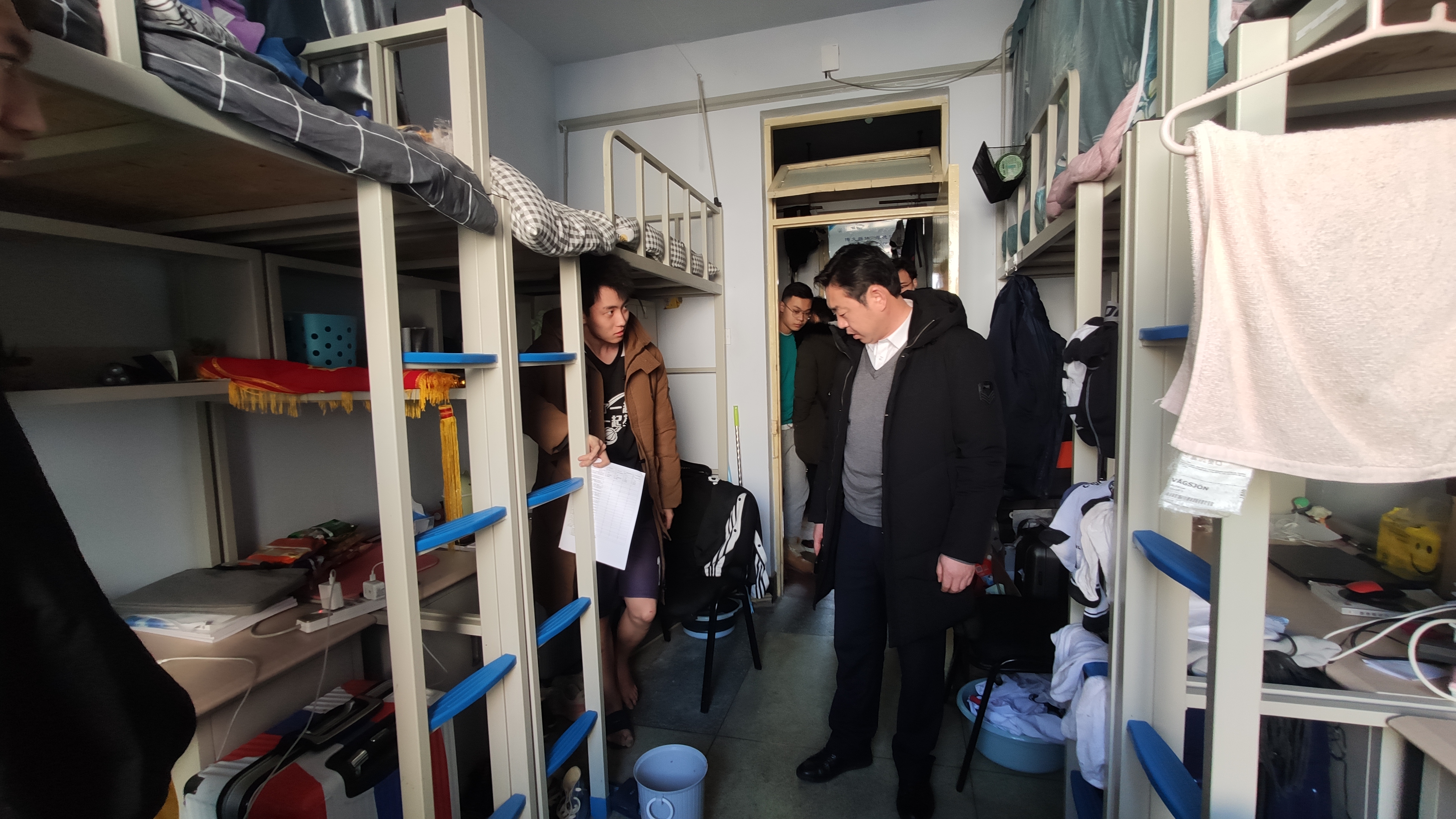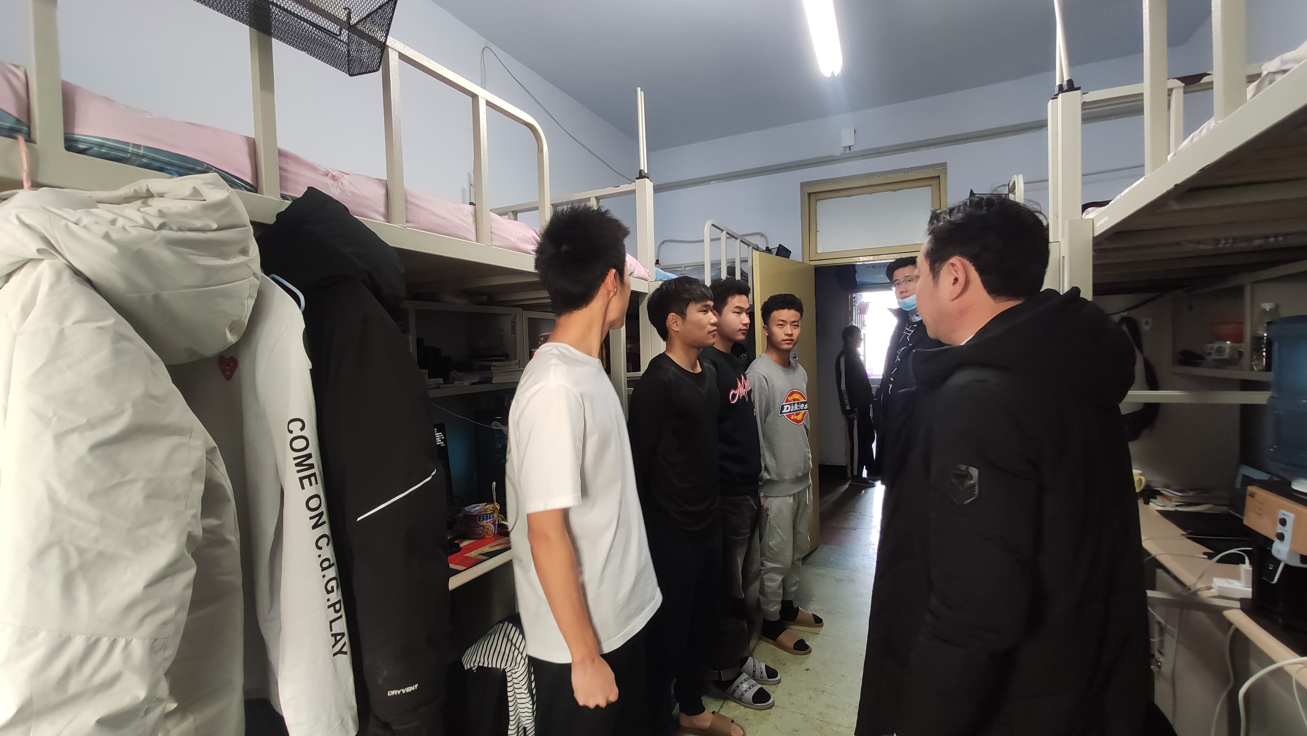 为进一步培养学生良好的生活习惯,排查寝室安全隐患,提高安全防范意识,2020年12月16日中午,成人导航 党委副书记兼副院长田进和全体辅导员带领成人导航 生活管理委员会学生干部,对成人导航 本科生寝室进行了走访和安全卫生大