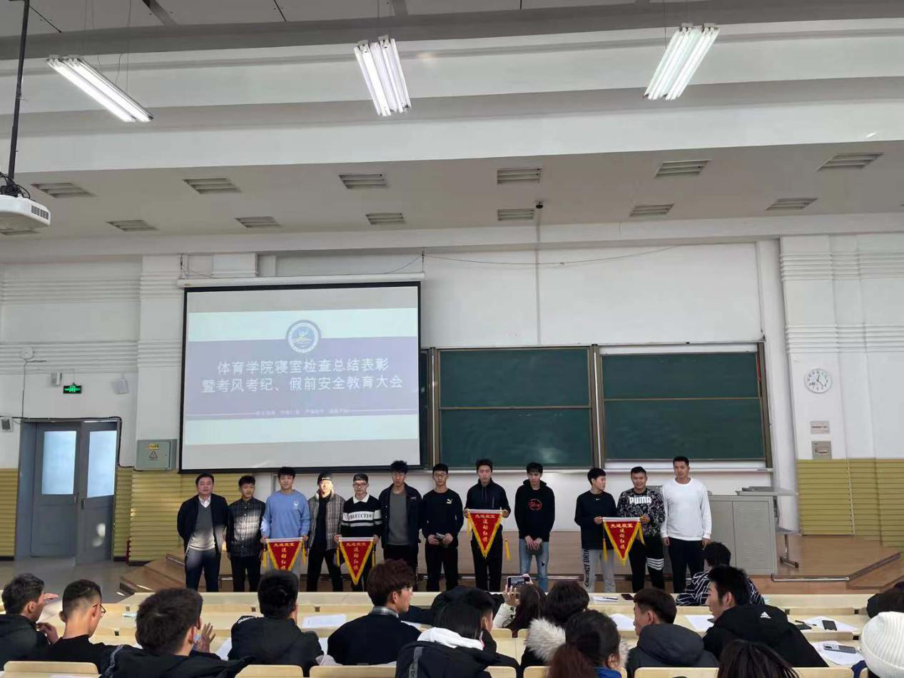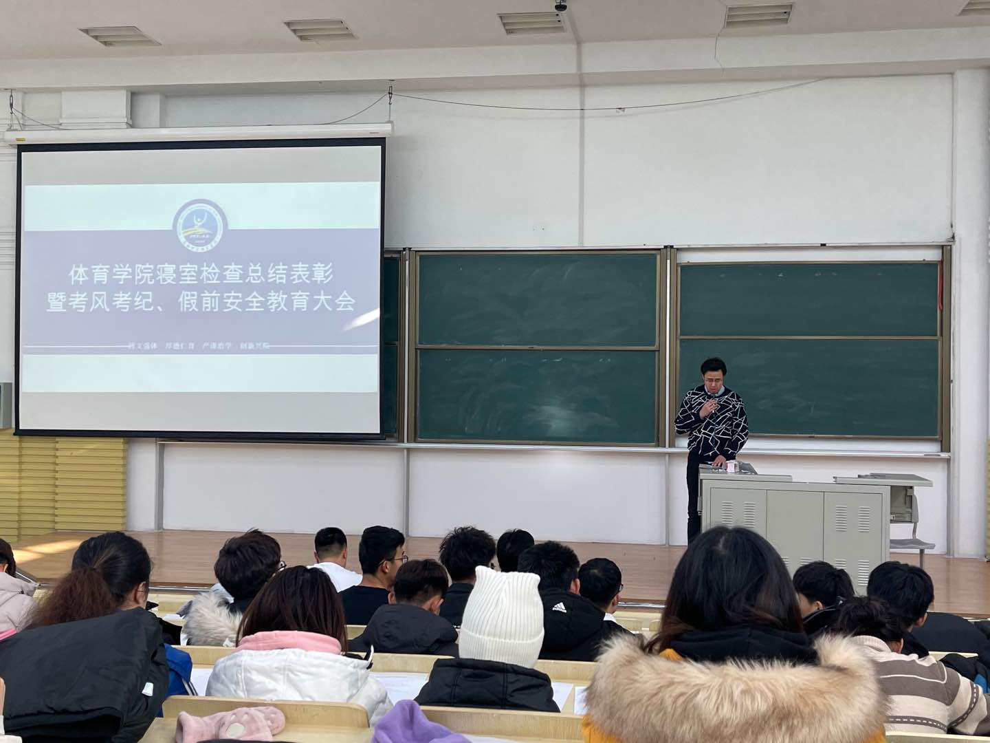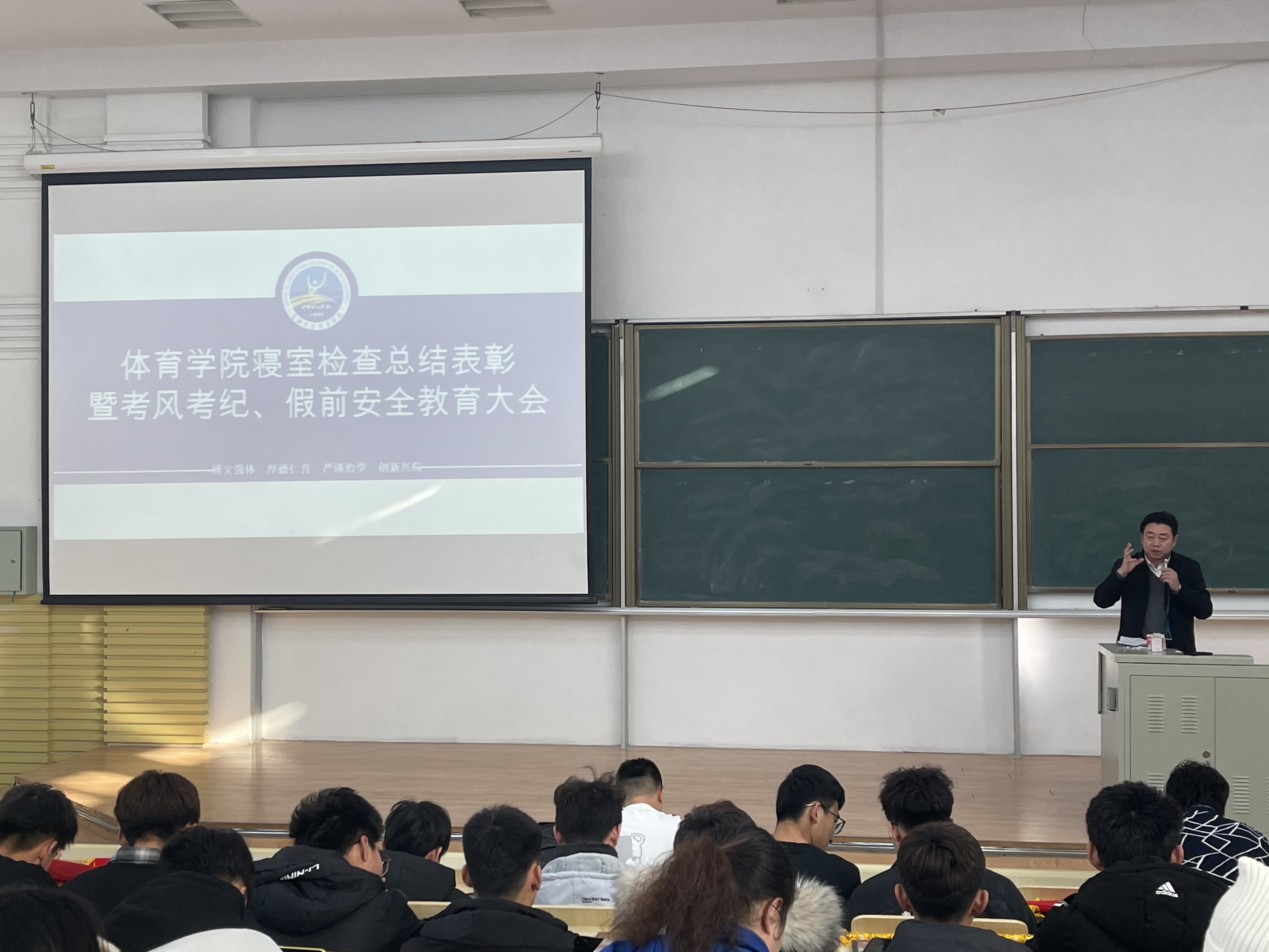 在逸夫楼第十阶梯教室召开本学期寝室检查总结表彰暨考风考纪、假前安全教育大会。成人导航