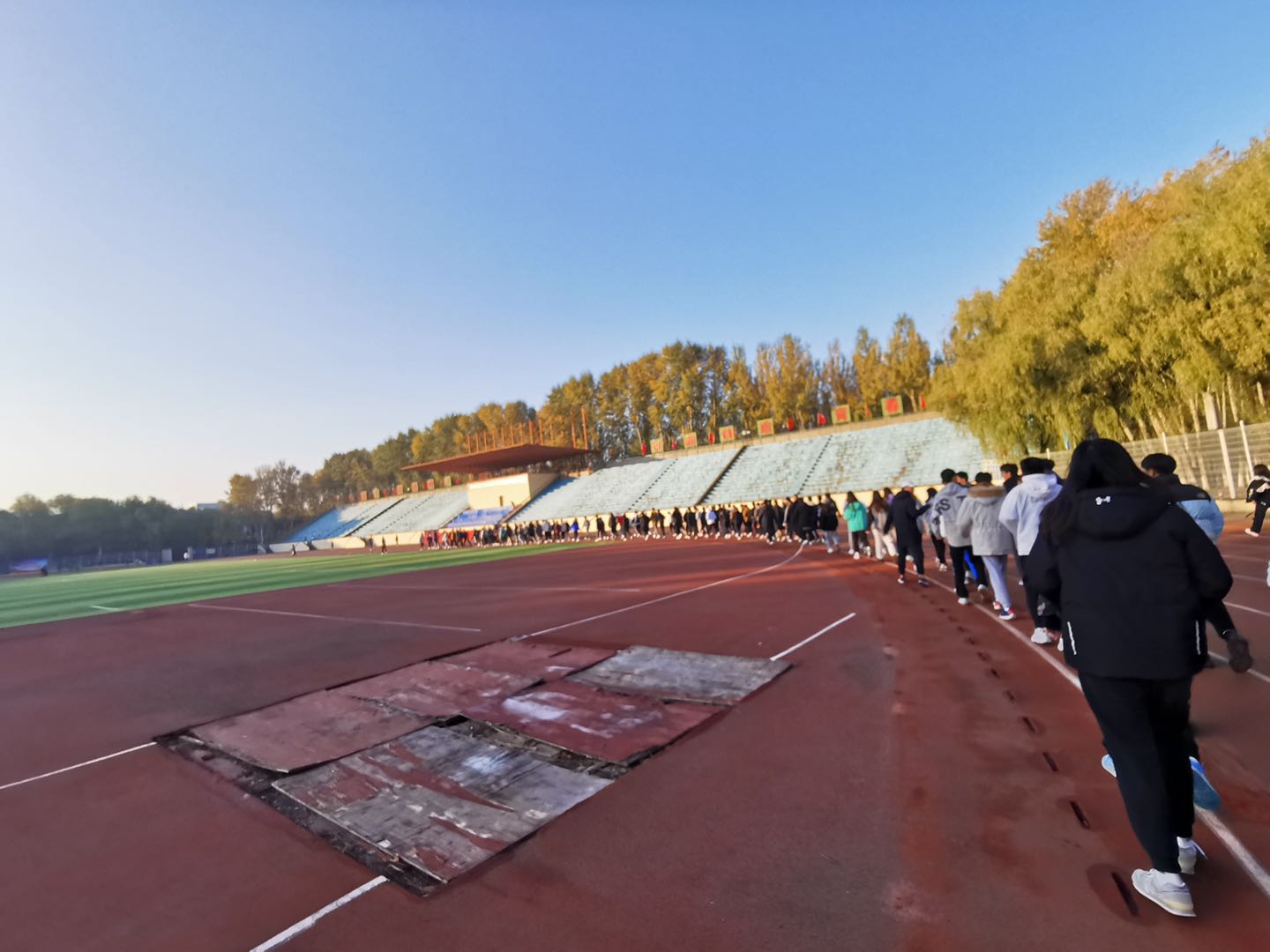 早操工作安排,2019级、2020级全体学生每天早上6点35分在田径场有序集合完毕,由学生干部严格按照标准执行考勤工作后带领同学们进行早操。早操内容形式丰富,包含慢跑、队列练习、体能素质练习、广播体操、军体拳等,各年级以班级为单位,随着各班体委口号声响起,同学们都以自己最饱满的热情投入了早操健身活动,队列整齐,步伐矫健,口号嘹亮,充分展现了当代大学生蓬勃的朝气和青春活力。成人导航