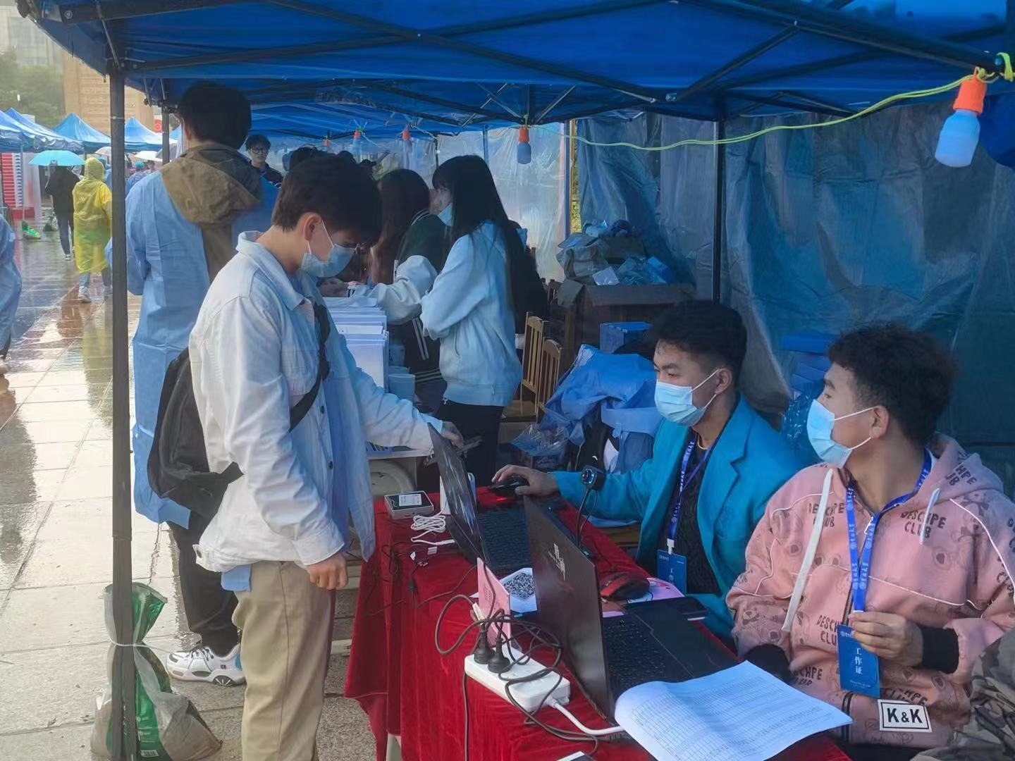 9月22上午七点,迎新工作开始志愿者们负责检查新生报道所需录取通知书核实身份证验证新生身份、检查“个人防疫行程卡”、收取高中学生档案及党、团关系资料,并发放防疫“健康包”、新生材料袋。新生按照防疫要求报到全程佩戴口罩。期间,校党委常务副书记冯正玉来到体育成人导航 的帐篷前,向工作人员和新生们表示亲切慰问。