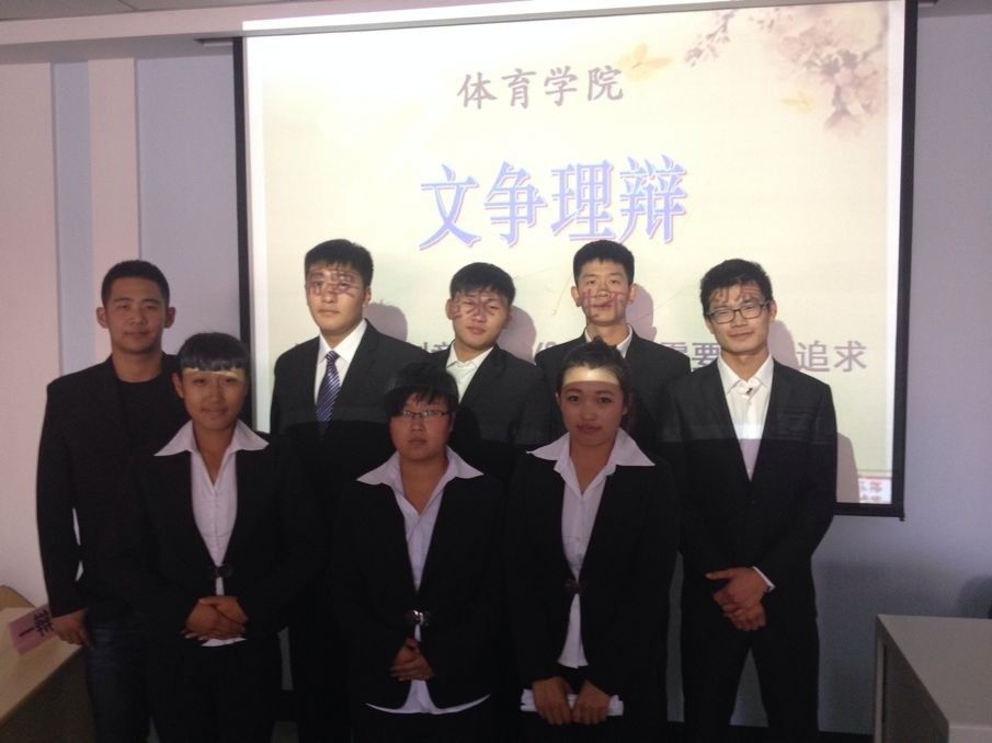 “文争理辩”辩论赛复赛在体育馆多媒体教室进行,本场比赛有幸邀请导员王赫谊、校社联副主席王跃武师哥、学生会主席刘玉鑫、万帮主席王世斌担任评委。